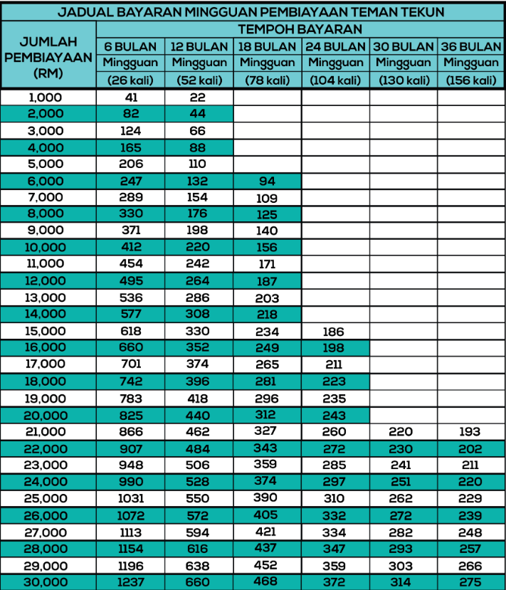 Kaedah Bayaran Ansuran Pembiayaan Skim Pembiayaan TEMAN 2.0